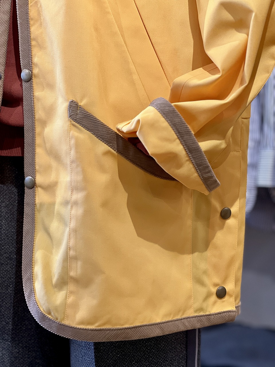 イエローボディにコーデュロイのパイピングがアクセントを効かせてます。
