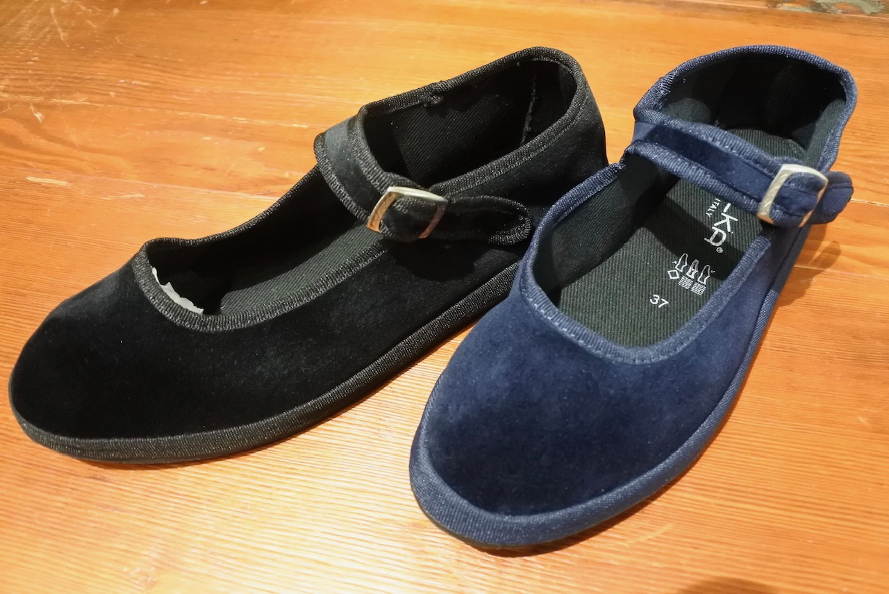 秋冬は足元をベルベット素材で飾ってみるという提案。