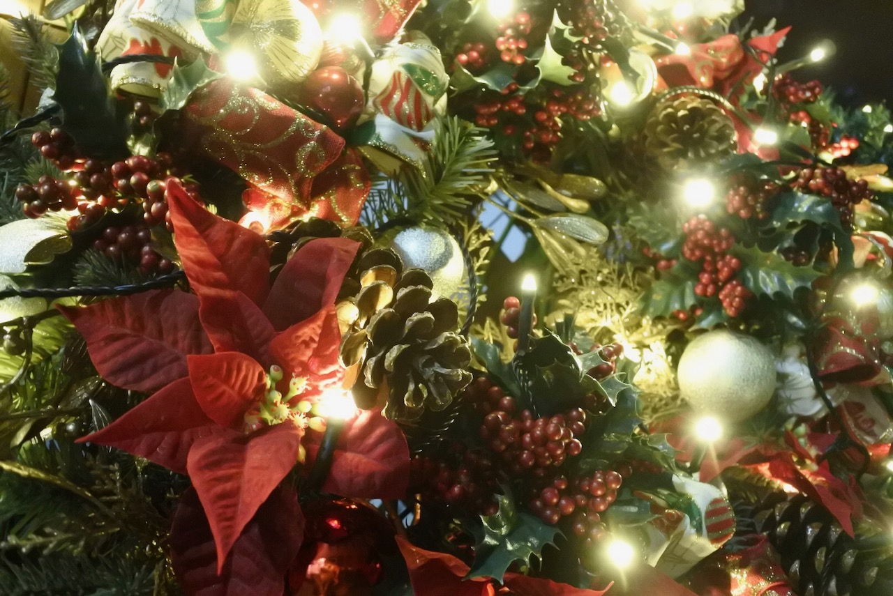 お店の近くの通りにクリスマスツリーが飾られていました。