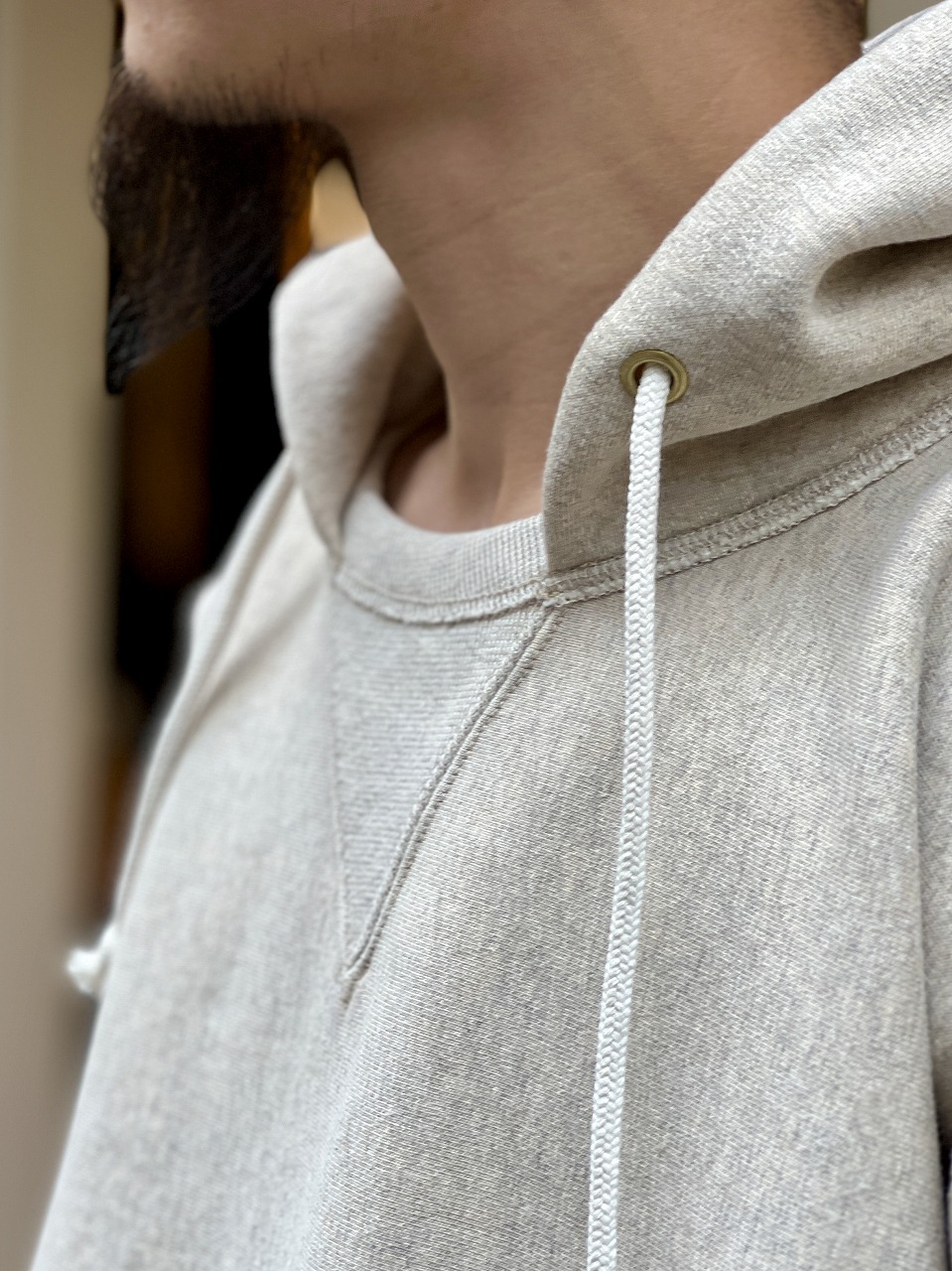 弾力がある生地感、肩の落ち感、ディテール、ここまで一切妥協していない作り込まれたパーカーは、なかなか無いのではないでしょうか。