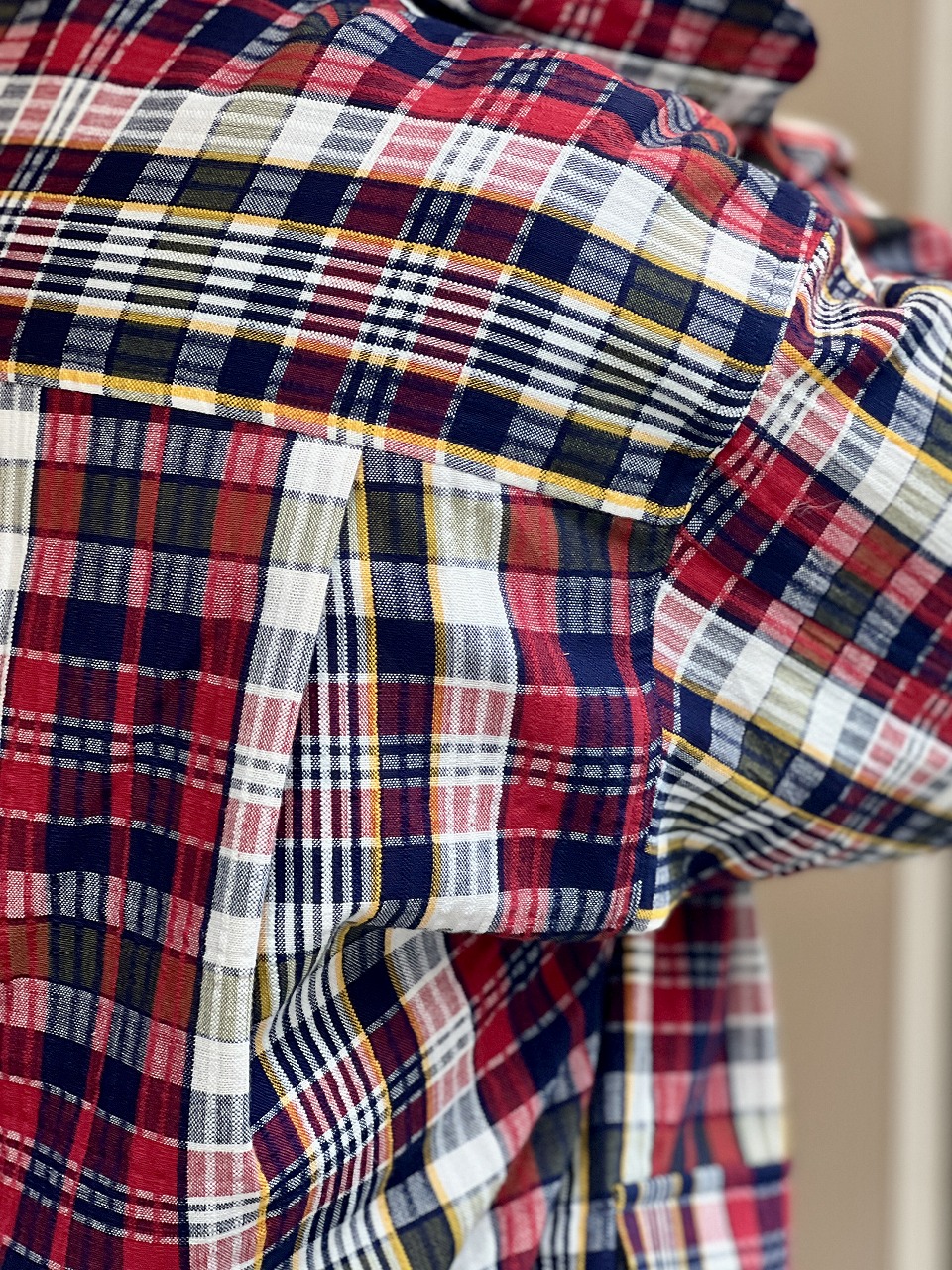 なんといっても目を奪われるのは、鮮やかなマドラスチェックのシアサッカー生地。