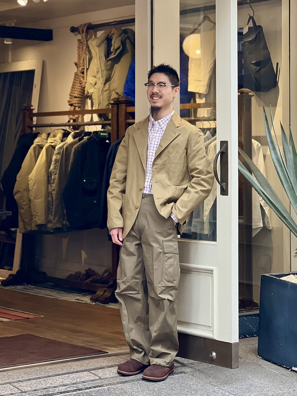 身幅広め、着丈短めのシルエットに、ボリュームのある軍パンのスタイリングはやっぱり落ち着きます。