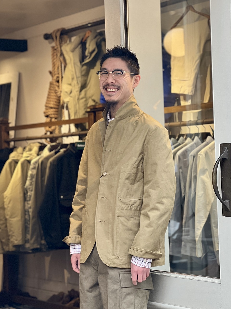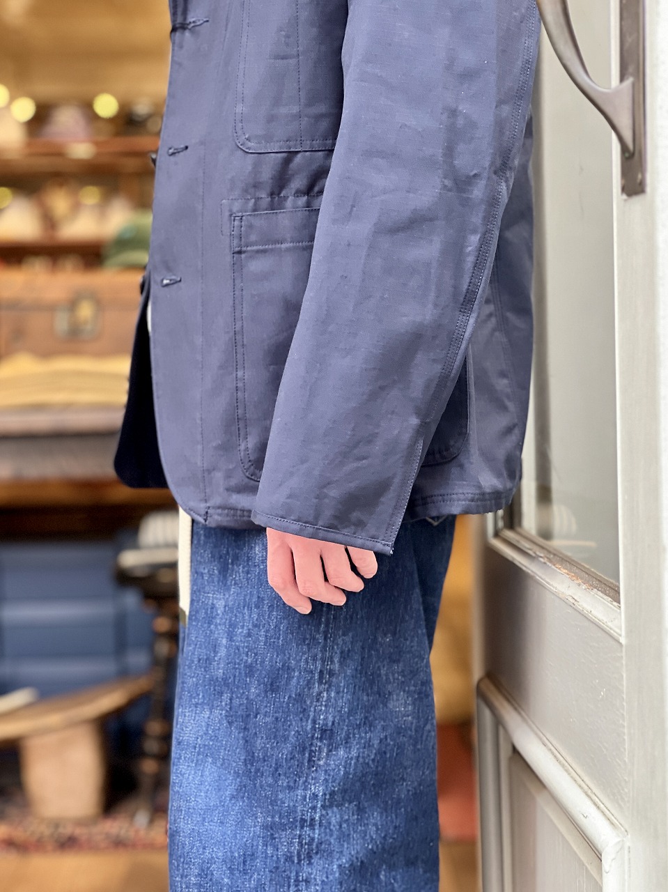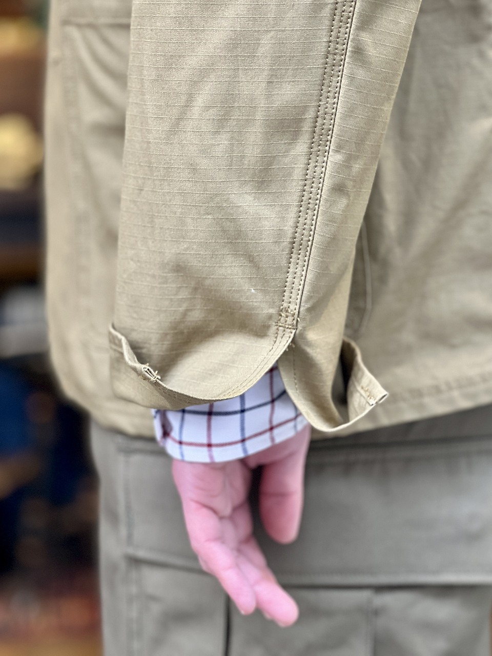 ラペル付きのジャケットながらもシガーポケット、トリプルステッチ、リップストップ生地など、どことなくワークな印象。