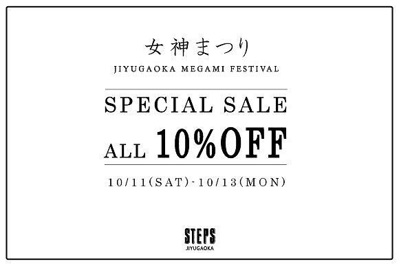 改めて10/11(土)、12(日)、13(月)はSTEPS自由が丘店にお越し下さい!!