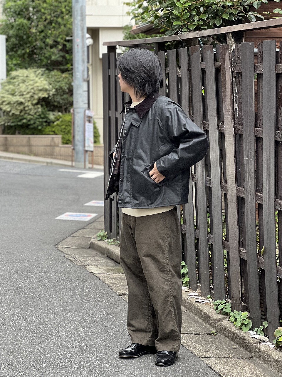 余談ですが、個人的にはTRANSPORTのBLACKが一番の推し。色は『Barbour=SAGEGREEN』の考え方だったのですが今年から目を惹かれています。シルエットとワックスコットンのBLACKが放つ独特な光沢。少し武骨なデザインにも見えるけど、英国らしい品のある雰囲気。たまらん。