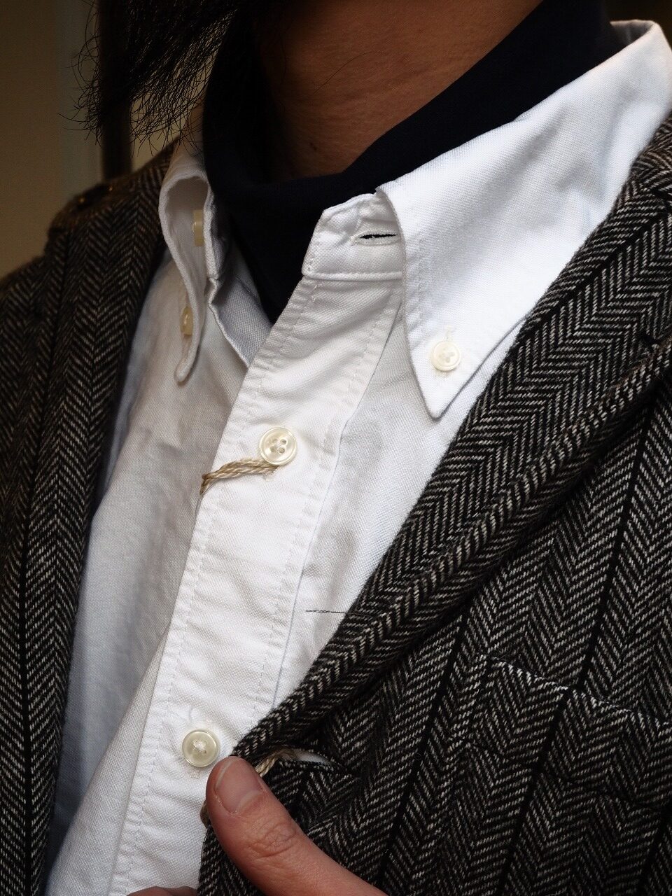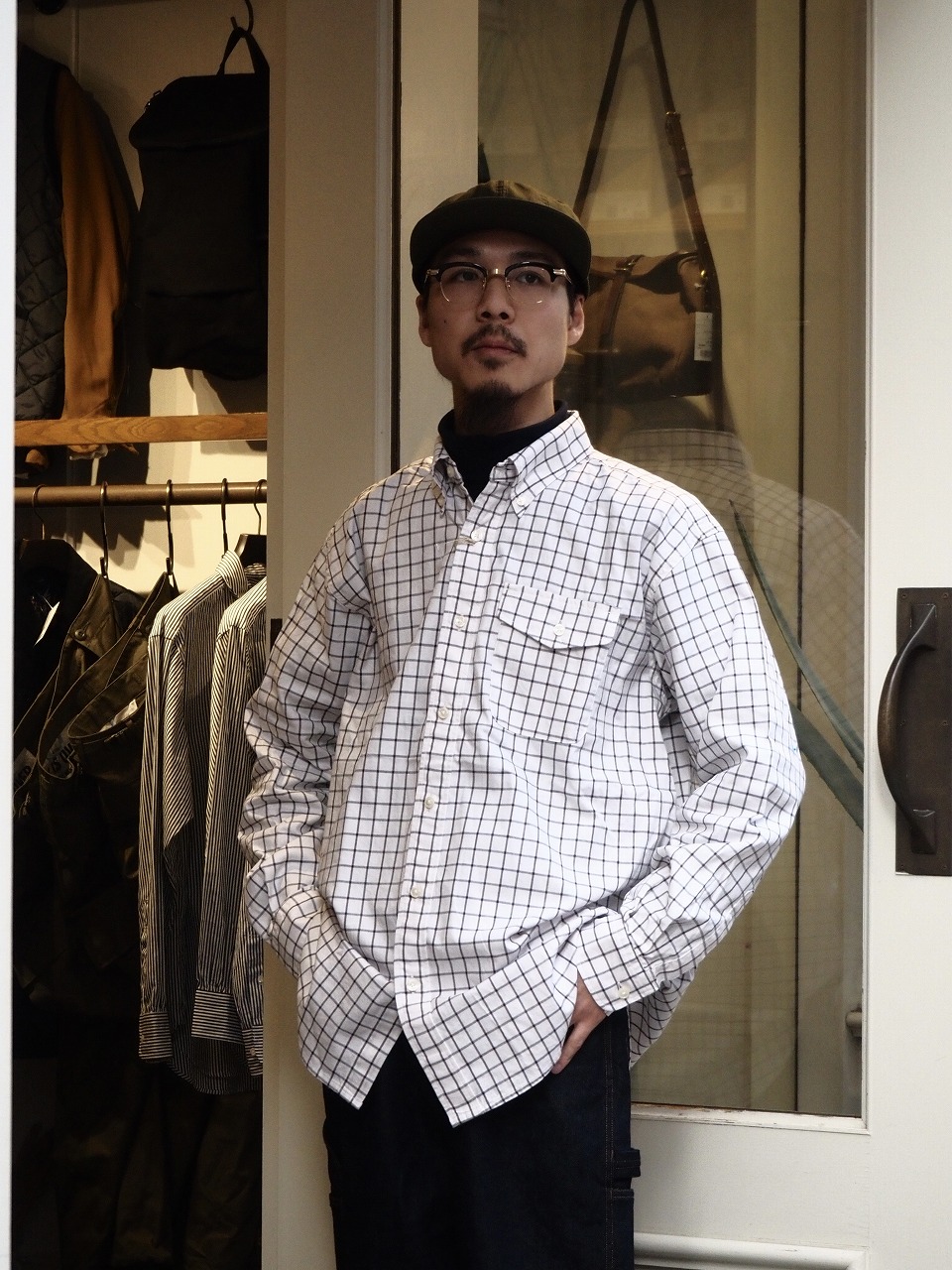 オックスフォードもタッタソール柄はトラッドやドレスシャツのイメージが強くありますが、不思議とこちらのシャツならカジュアルに着たくなりますね。