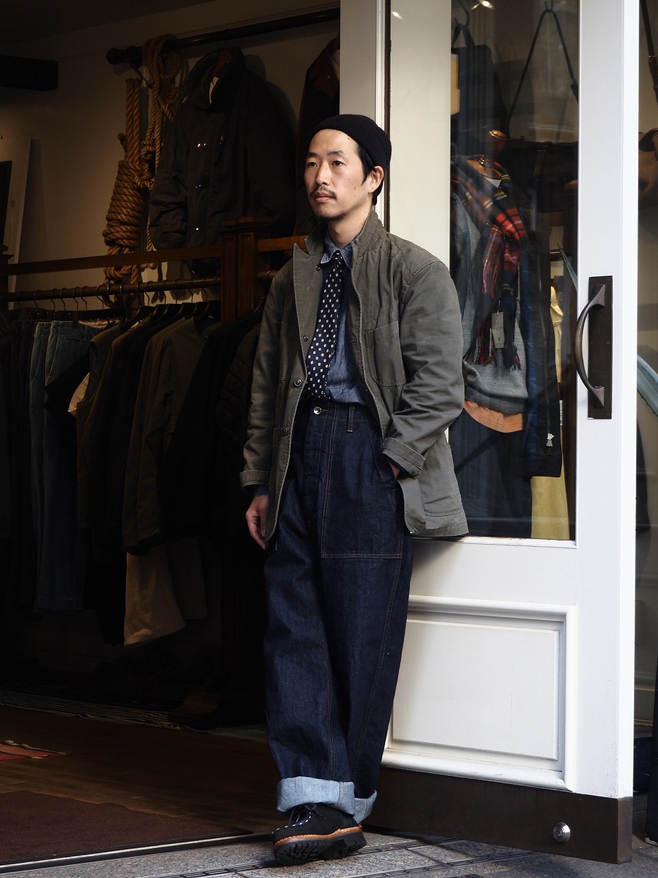 バックサテンではなくファティーグパンツ、ありあそうでない組合せも相まって非常に新鮮です。